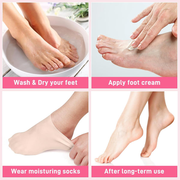 Just wet your feet with lotion or moisturizer before putting on the Silicone Moisturizing Socks. To prolong and enhance the effect, wear them two to three times a week for at least half an hour each time. Dry, rough, and cracked skin can be easily relieved, leaving your feet feeling soft and beautiful.